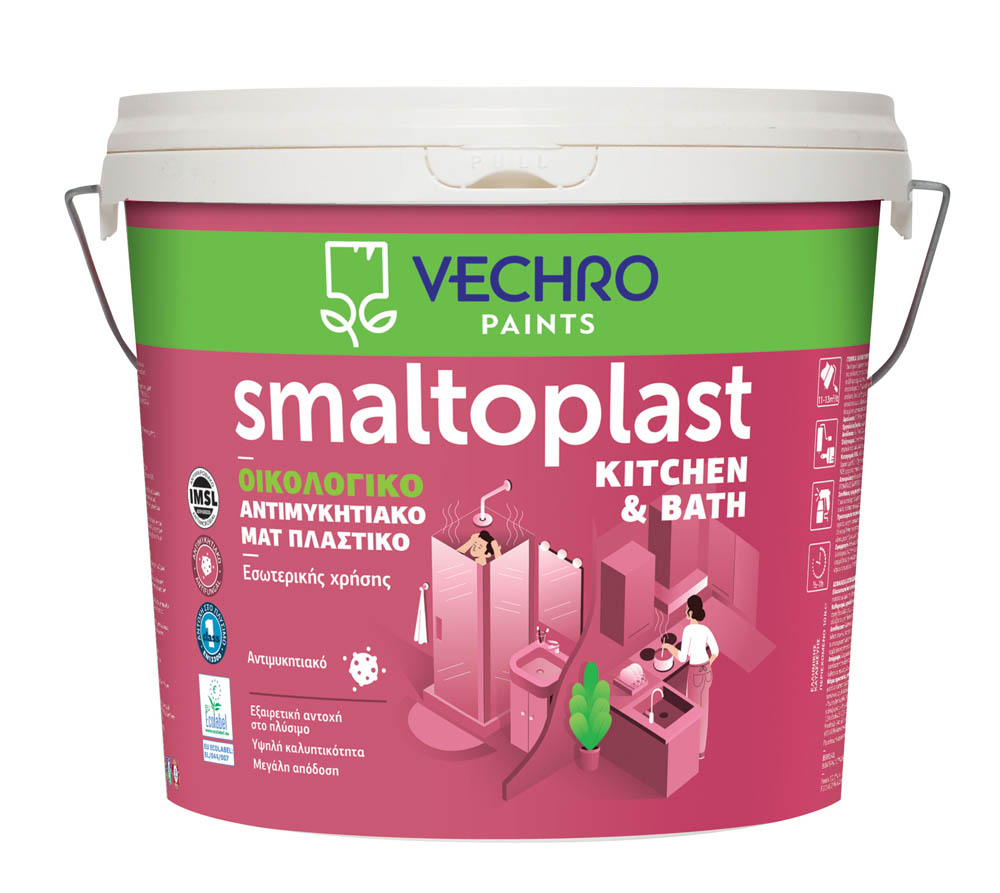 Οικολογικό ματ χρώμα εσωτερικής χρήσης με αντιμυκητιακή και αντιμικροβιακή δράση (ISO 22196:2011), IMSL. Ιδανικό για μπάνια και κουζίνες. Ανθεκτικό στο συχνό πλύσιμο (Κλάση 1, ΕΝ13300).